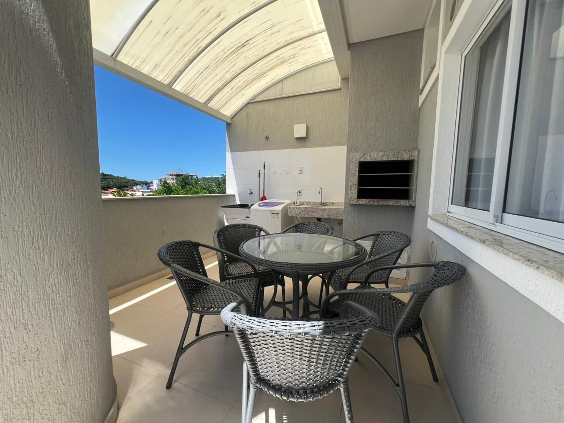 Suites con cama box queen, aire acondicionado split. Salón con 1 sofá cama grande. Colchón extra. Cocina completa duplex heladera, estufa, microondas, con todos los utensilios del hogar (vajilla, cubertería, sartenes, sandwichera, licuadora). Utensilios para barbacoa (brochetas, parrillas) Área de servicio con lavadora. Balcón con barbacoa, Una plaza de aparcamiento Internet WI-FI.