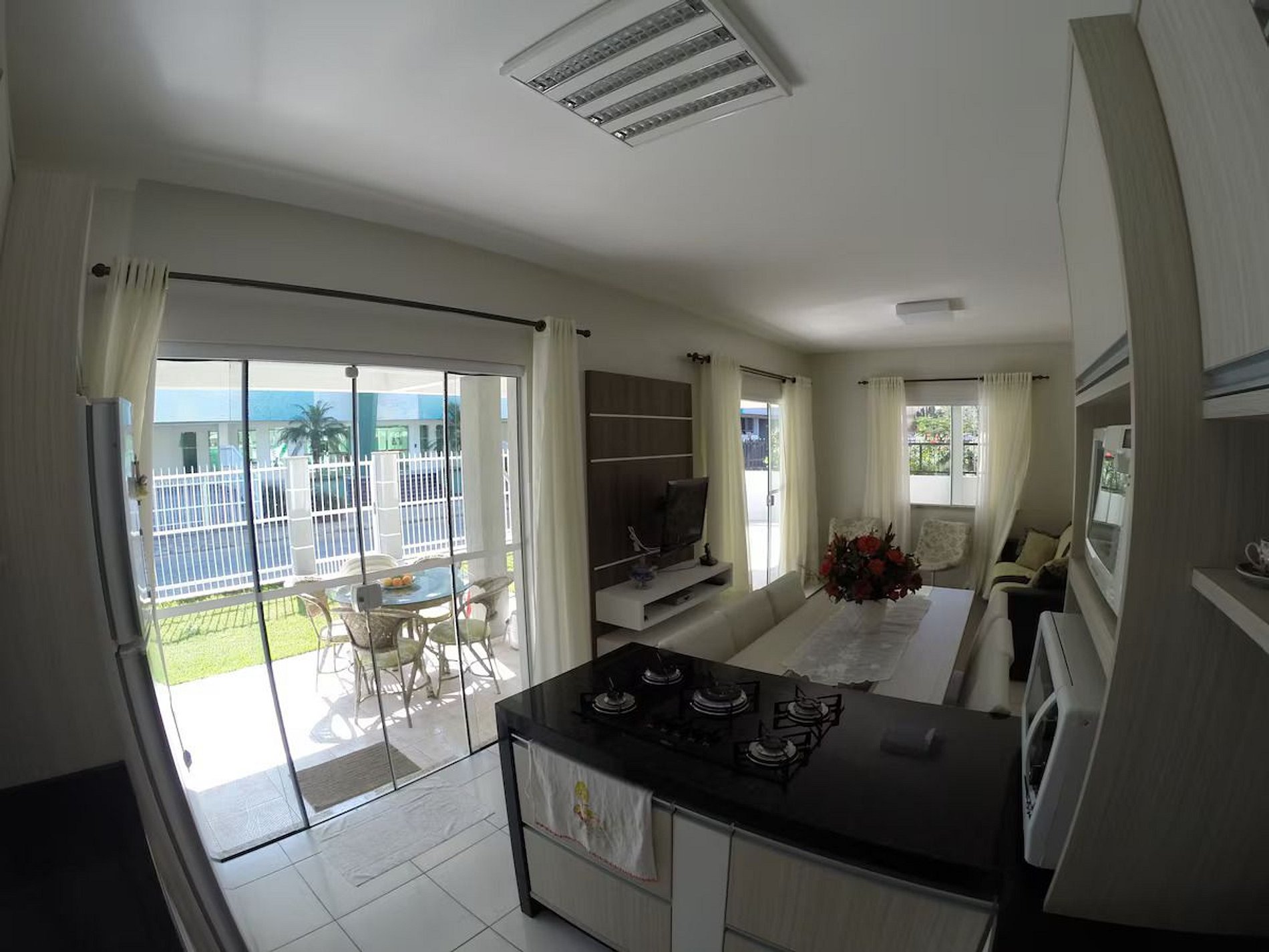 Excelente casa 3 dormitorios a 320m playa central y 950m Quatro Ilhas. Suite principal con TV LED, habitaciones climatizadas, baño ducha presurizada. Sala amplia, cocina gourmet equipada refrigerador dúplex, microondas, horno eléctrico. Balcón parrilla y hamaca, ducha exterior post-playa, Wi-Fi, sistema alarma, garaje 2 autos, portón electrónico. ¡Ubicación privilegiada corazón Bombinhas!