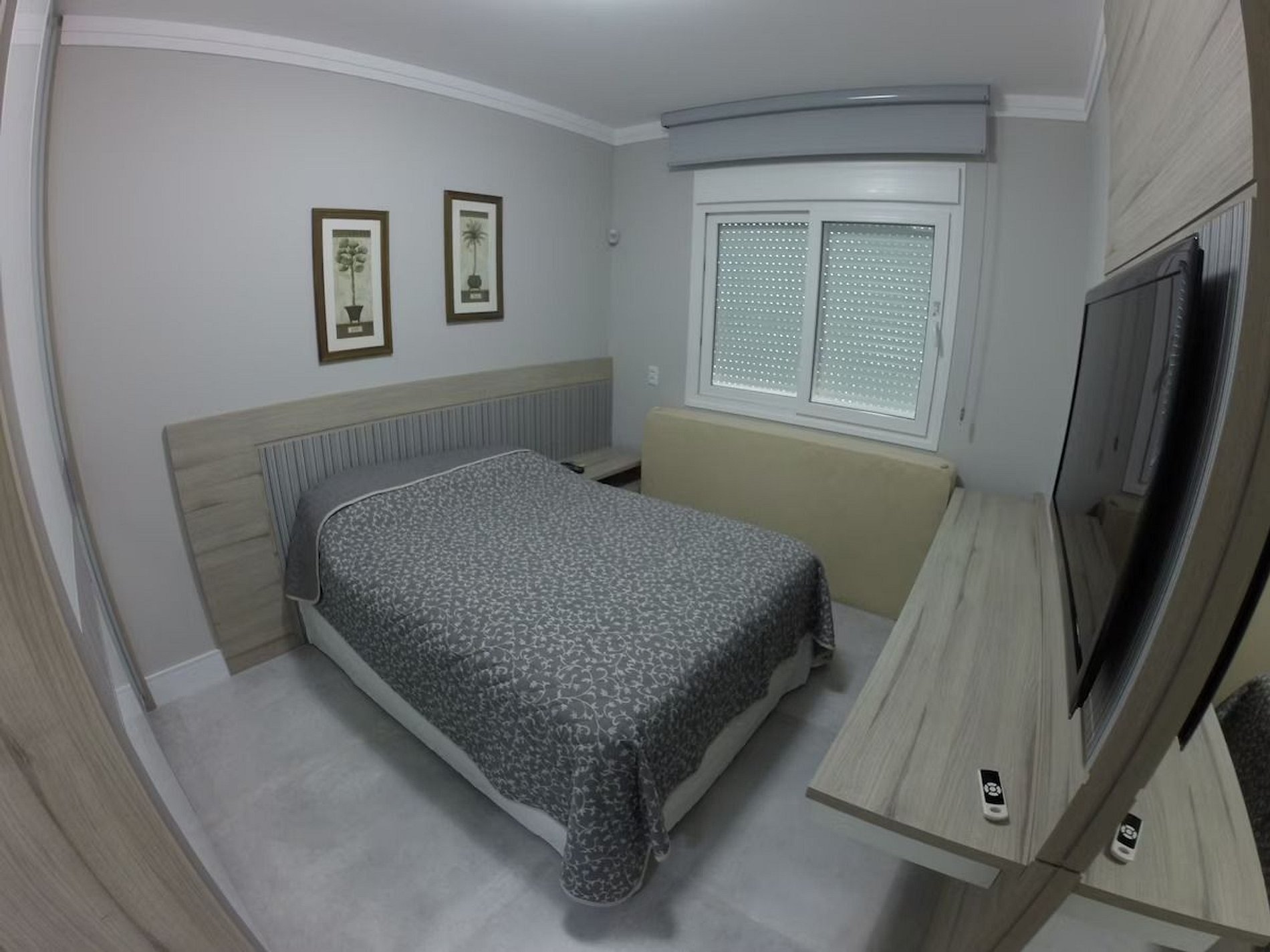 Dormitório com 1 cama de casal tamanho padrão e AR condicionado
