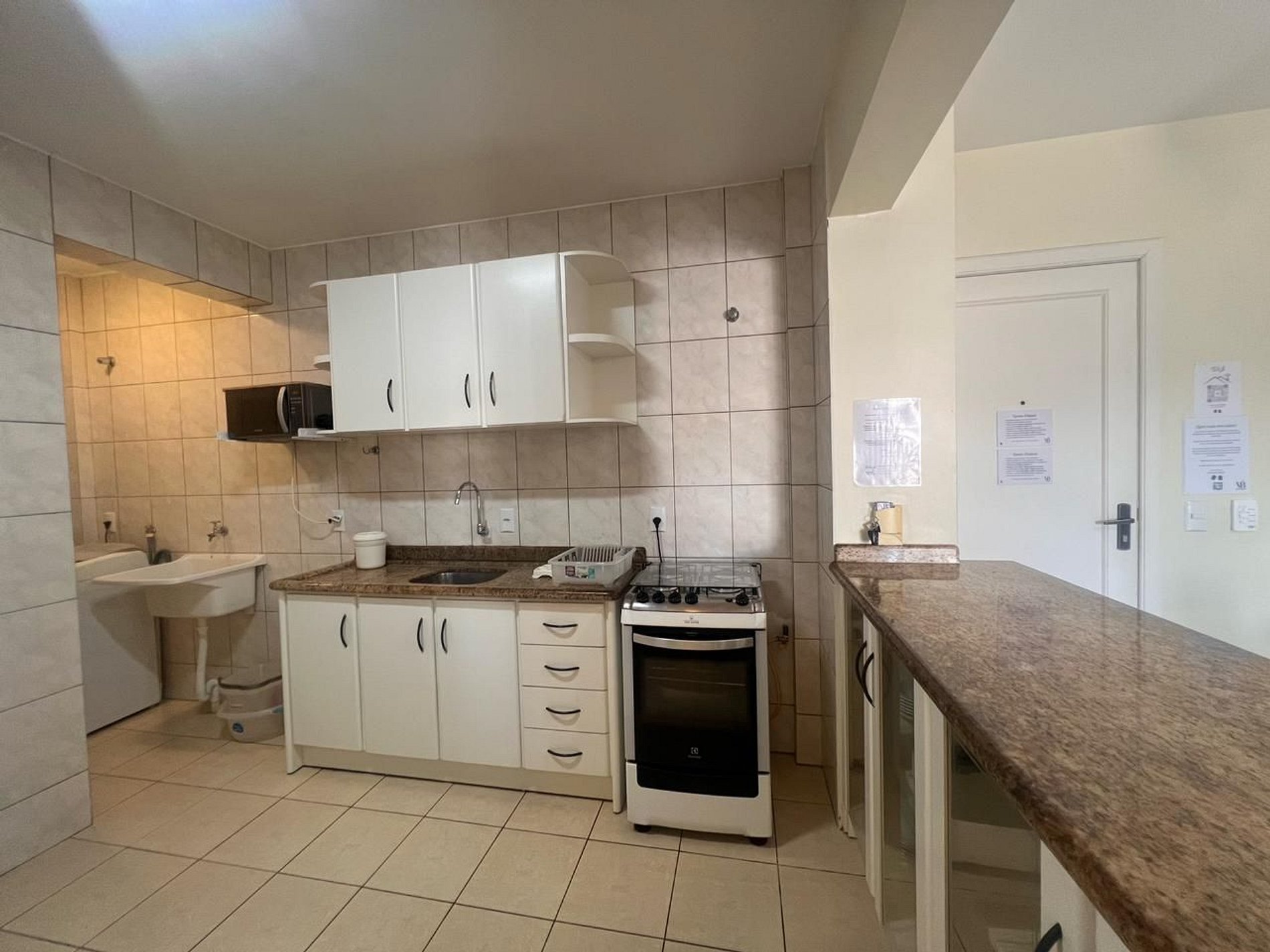 Cozinha completa com utensílios.