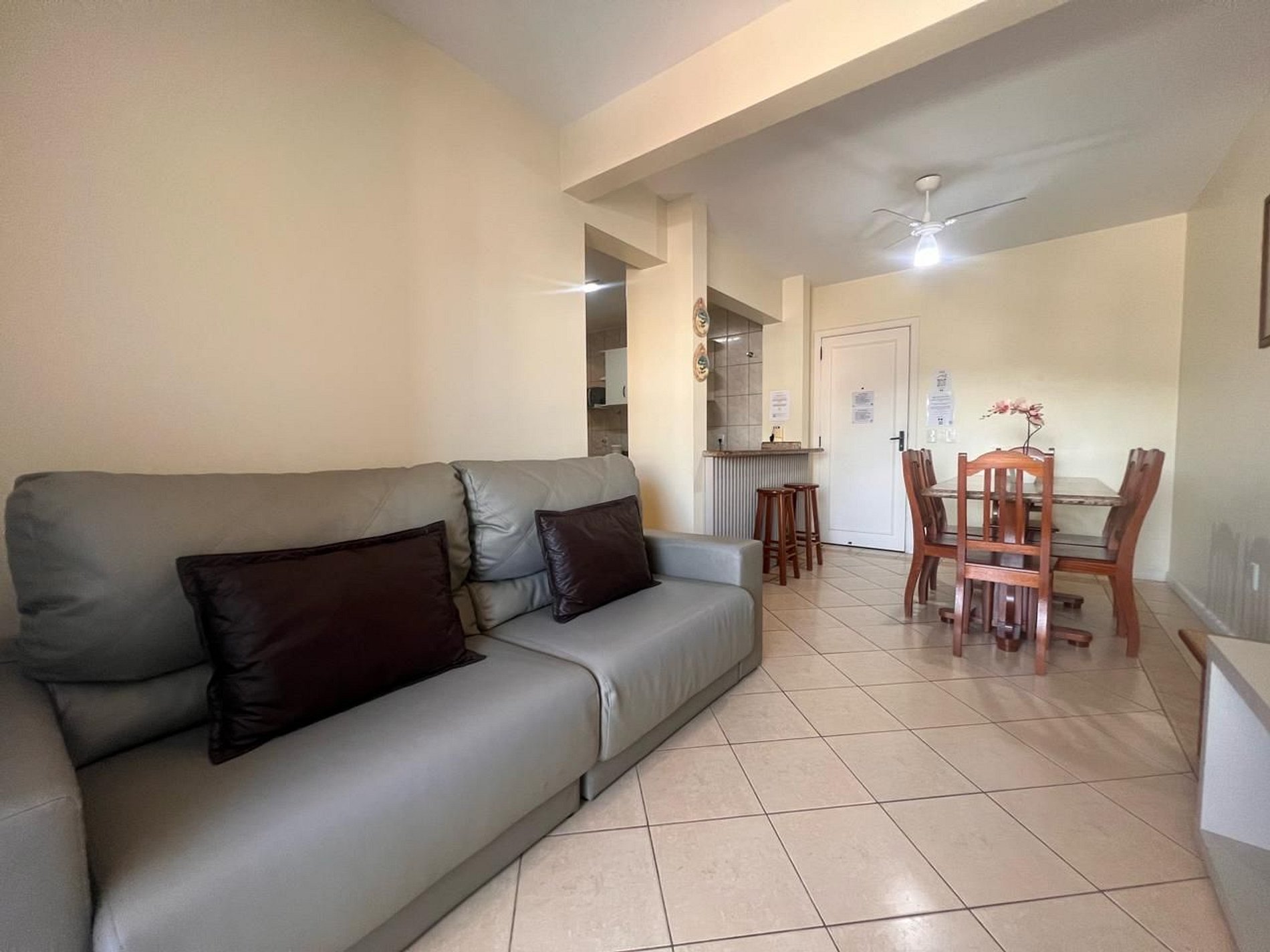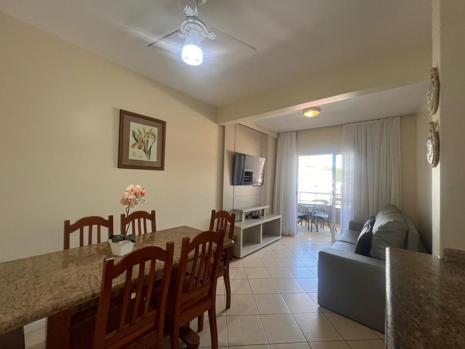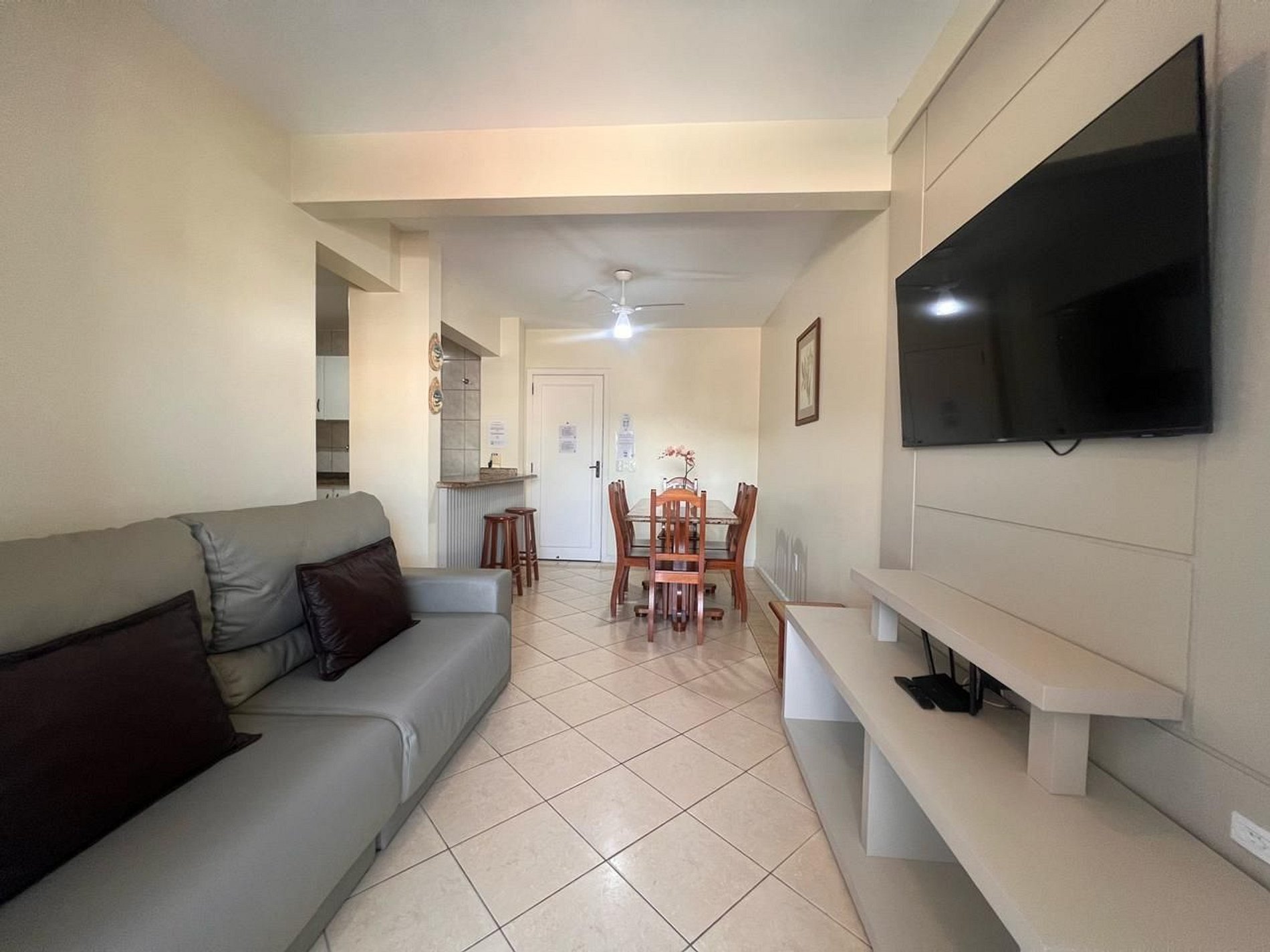 Ar-condicionado em todos os dormitórios e ventilador na sala.