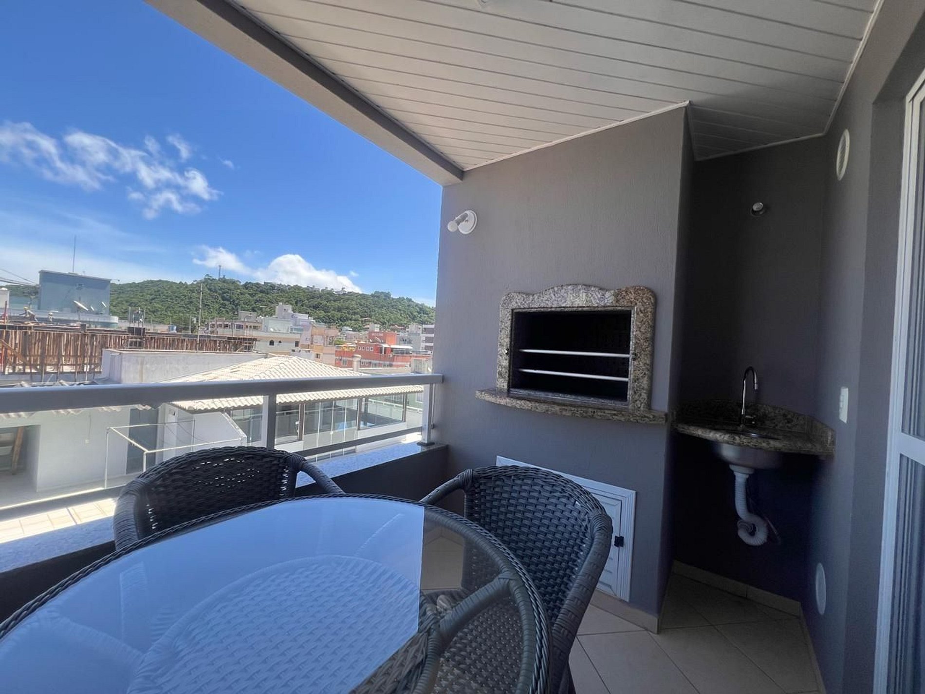 Sacada com churrasqueira, disponibilizamos grelhas e espetos.