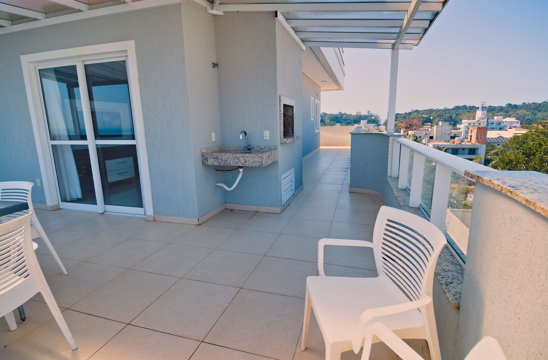 Sacada com churrasqueira, disponibilizamos grelhas e espetos.