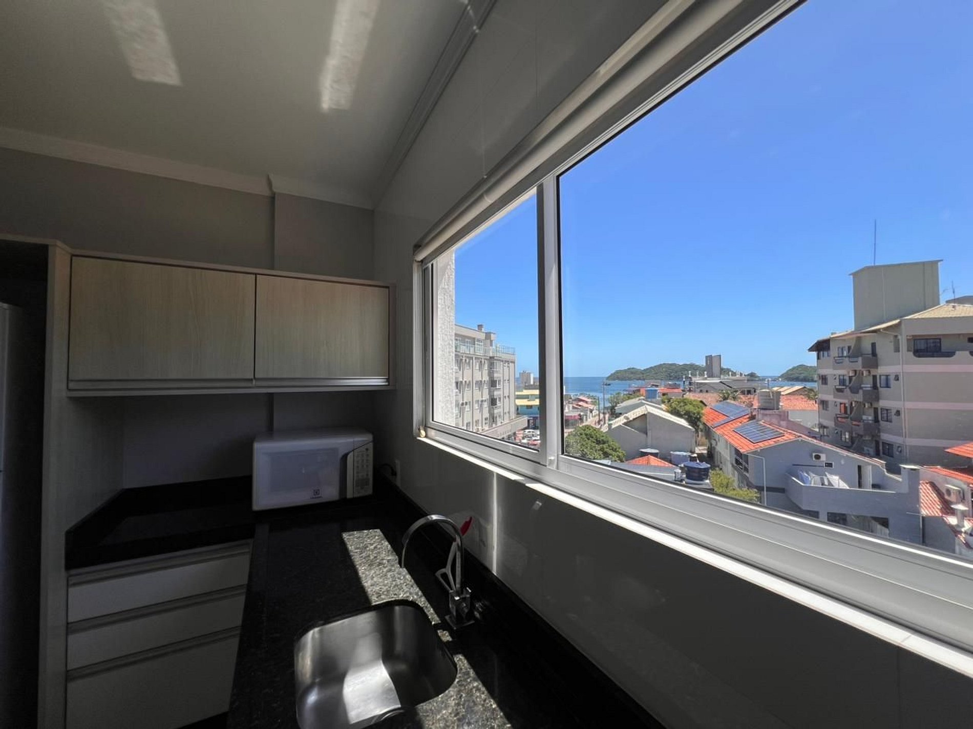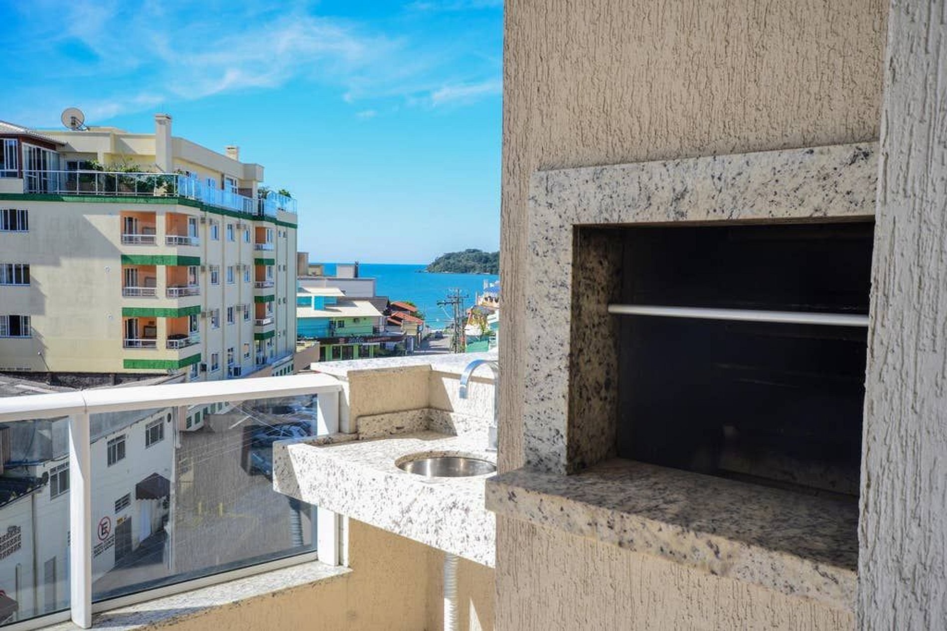 Sacada com churrasqueira voltada para a frente do prédio, disponibilizamos grelhas e espetos.