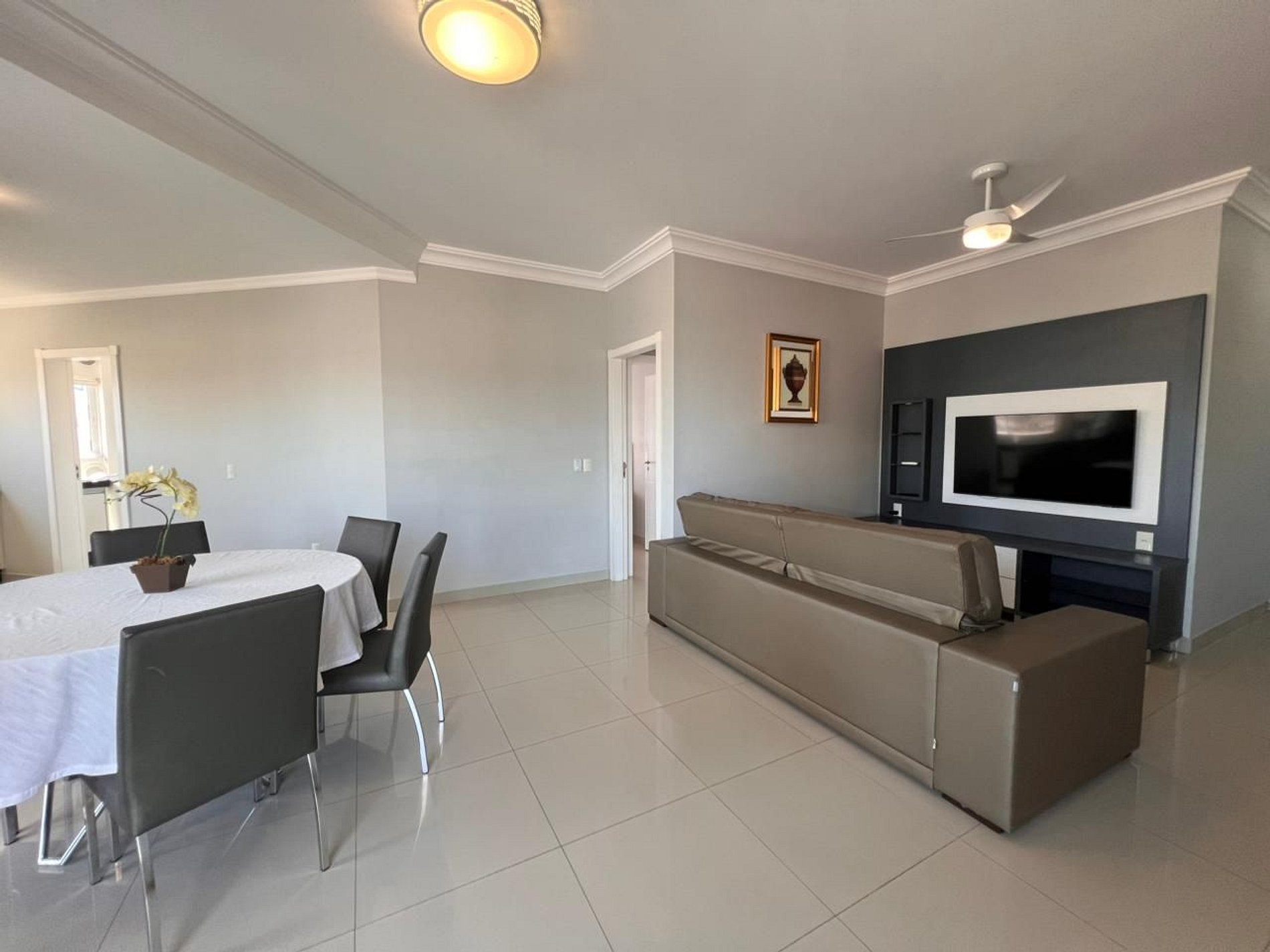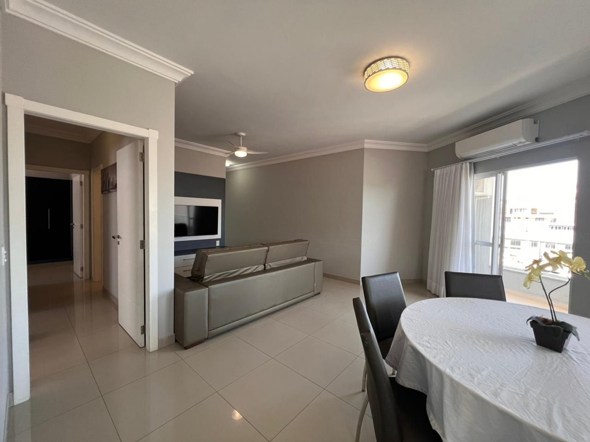 Ar-condicionado em todos os dormitórios e ventilador na sala.