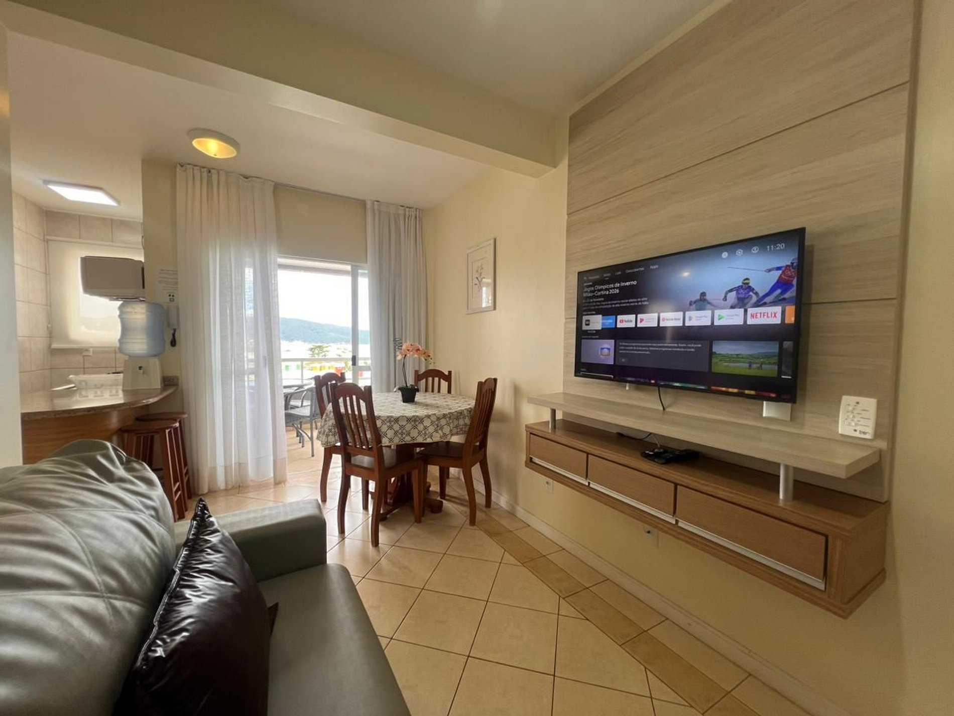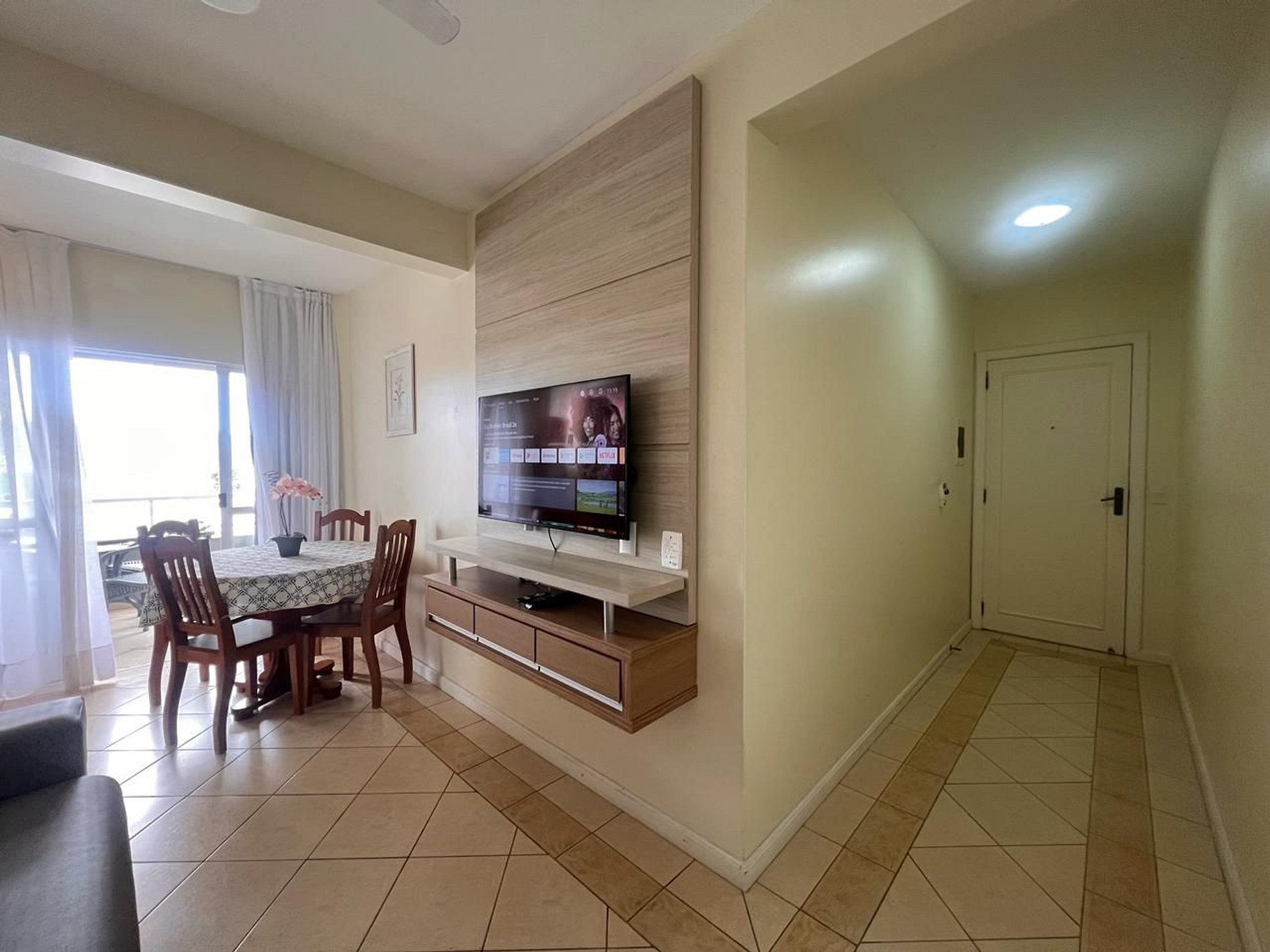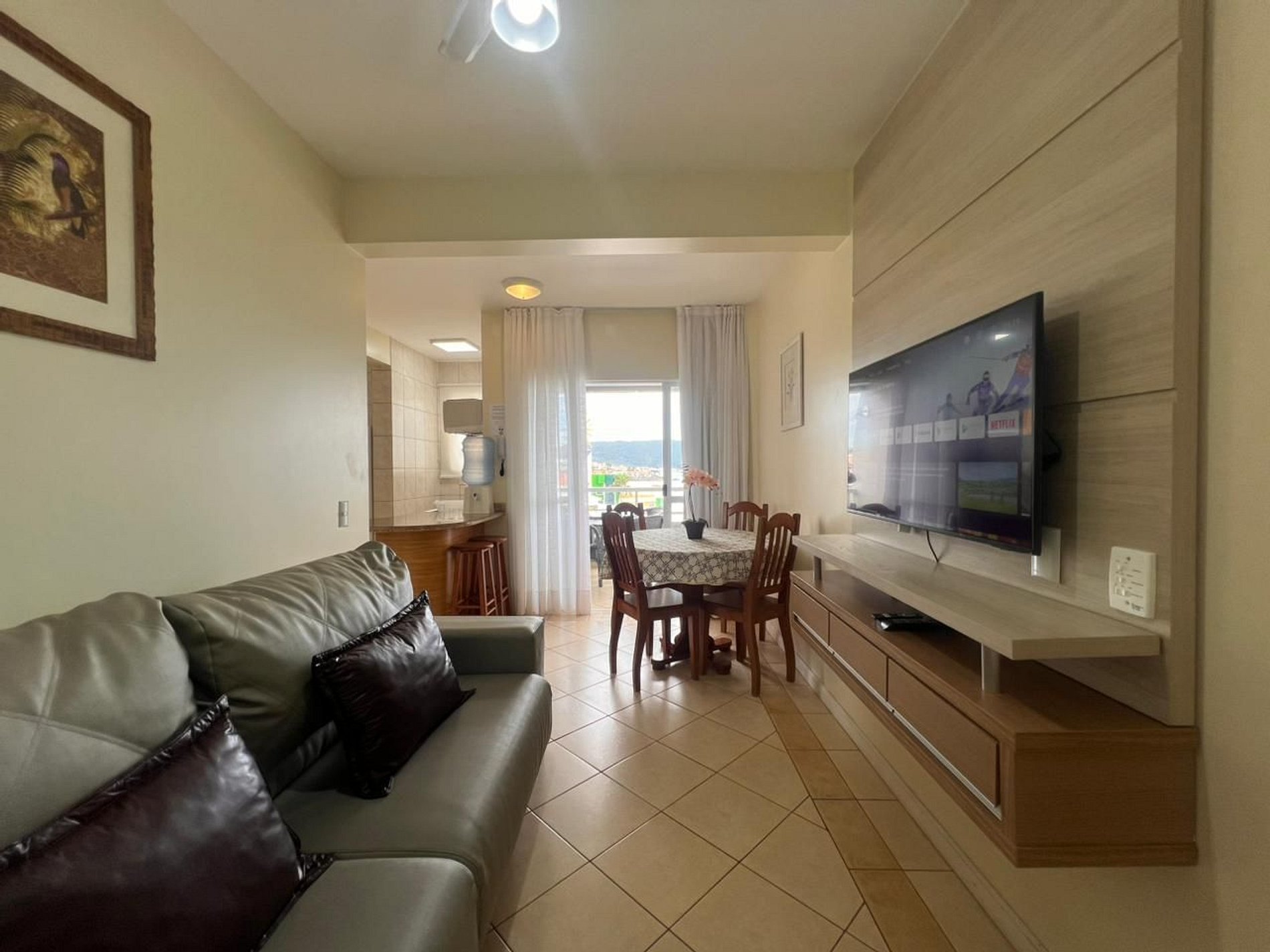Ar-condicionado em todos os dormitórios e ventilador na sala.