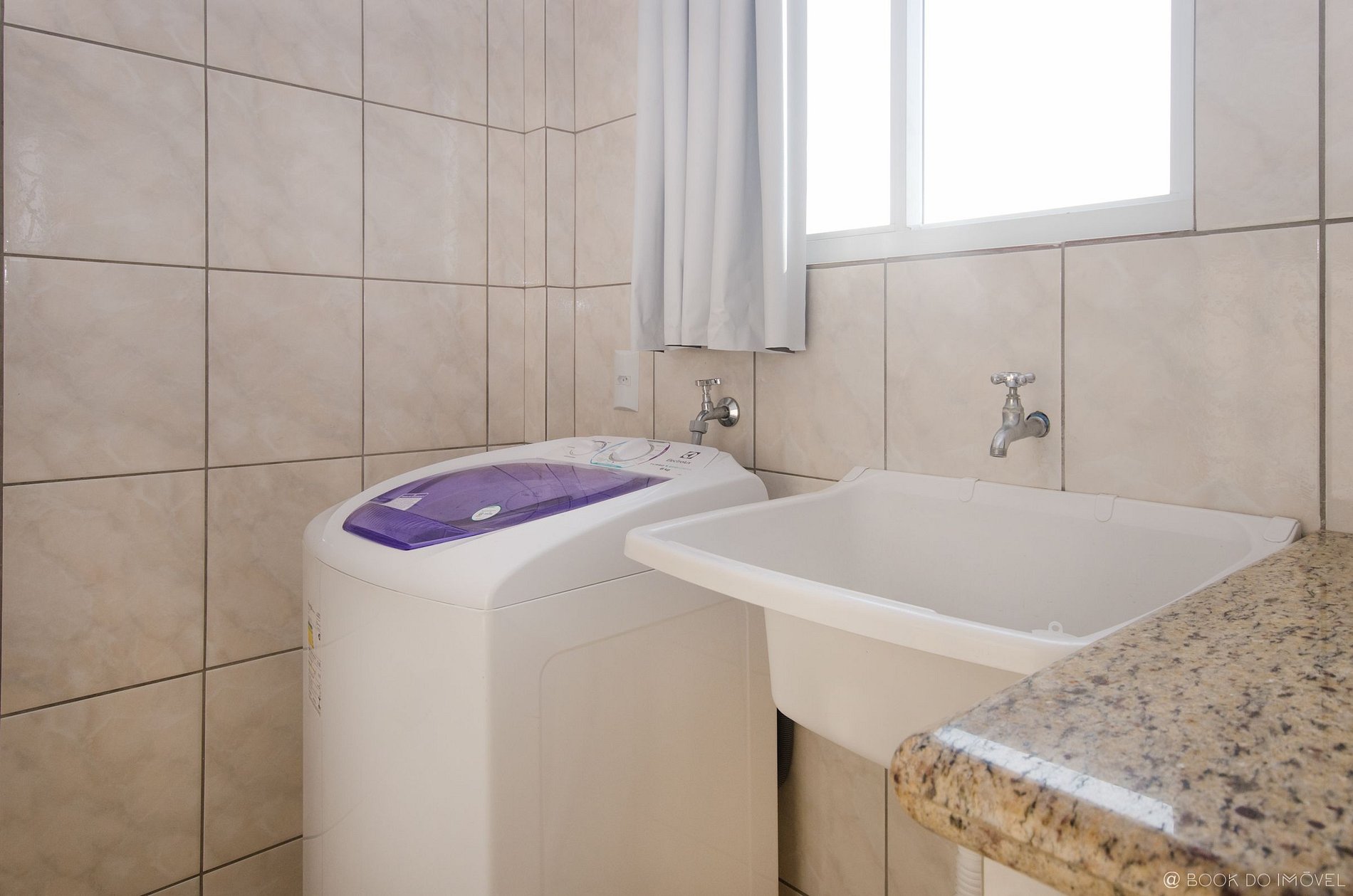Lavanderia com máquina de lavar.