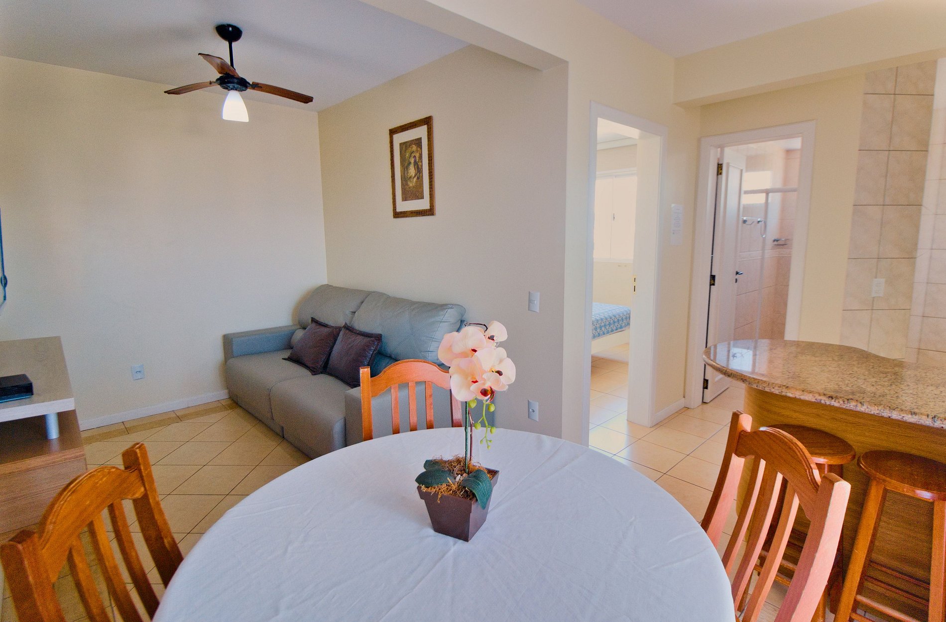 Ar-condicionado em todos os dormitórios e ventilador na sala.